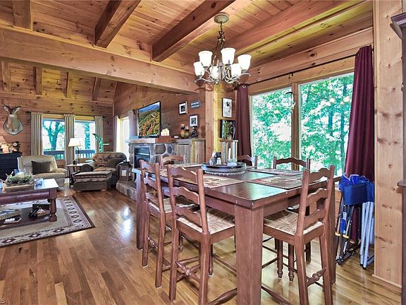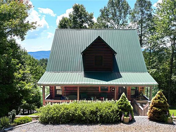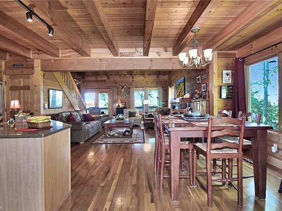 Great views from this log home in the gated community of Majestic Mtn. 3 bedrooms, 3 full bathrooms, open floor plan, Kitchen has solid surface counters & stainless appliances & open to living & dining areas, gas log fireplace, 2 bedrooms & 1 Full bath on the main level, hardwood floors, third bedroom is upstairs with full bathroom and loft area, finished basement has great family room & bonus room and bathroom #3. Covered porches & a stone patio with a fire pit for entertaining & gazing at the mountains or the stars! Short-term rentals are allowed. Home warranty offered.