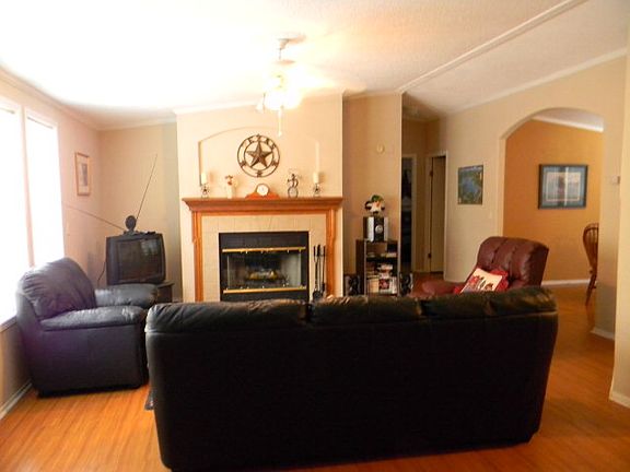 Well maintained, move-in ready 3/2, split floor plan home is on 1.5 acres. Wood laminate flooring in living room, kitchen and dining. All bedrooms have large walk-in closets. Master bath has double vanities, garden tub and separate shower. Wood fireplace in living room, Berber carpet in bedrooms. All appliances in kitchen remain. Large deck in the back and tree house for the kids and home located on dead-end road. Great view of hill country. Roof replace in December 2013. Brokered And Advertised By: Blue Water Real Estate Listing Agent: Gaynell Romero
