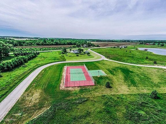 This house is located in the gated community of Trophy Lake Estates 2. Lake front property with access to tournament water ski lake and association boat, dock, tennis court, basketball court, sand volleyball court, and walking running paths. Three bedroom 2 1/4 bath loft style home with large open floor plan. Beautiful large windows throughout capture the beauty of the setting. This house was built with energy efficiency in mind south facing roofs with 9.8 Kilowatt solar panel array, geothermal heating/cooling, radiant floor heat in basement and garages. Two three car over sized garages, 30 x 48 feet. Hickory cabinets and trim throughout the house. Quality flooring throughout with acacia hard wood floor in main great room, 60 oz. carpet in bedrooms and loft, bathrooms, entry and the mud/laundry room are tiled. Large corner whirlpool jetted tub in master bath. Association full tennis court and 1/2 basketball court are situated on the property.