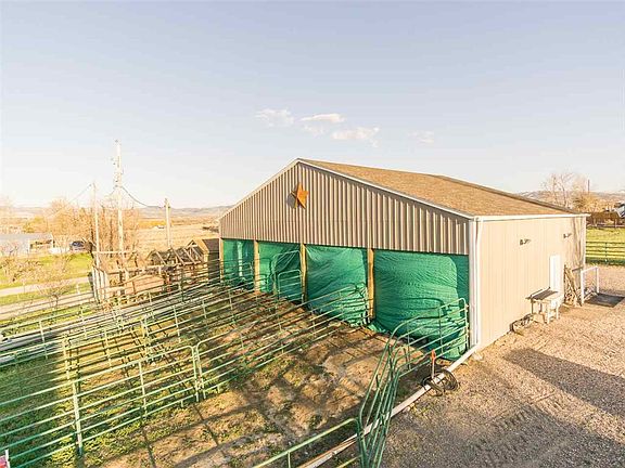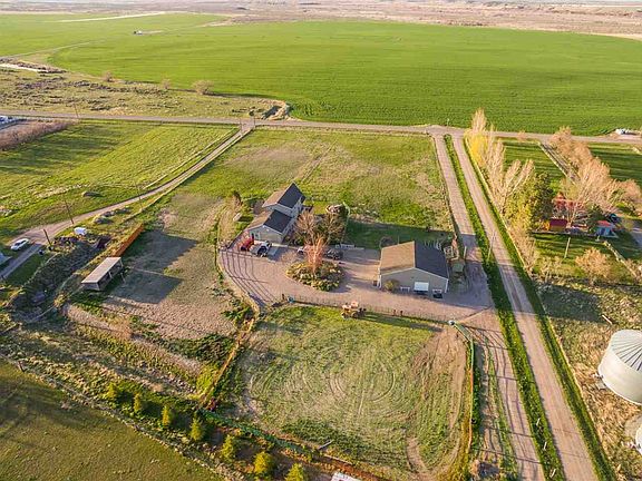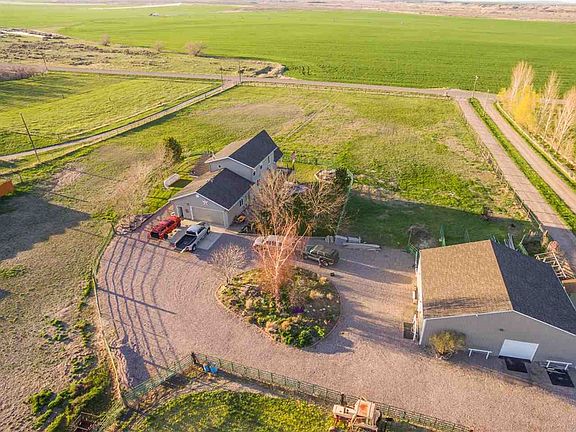 This is a gorgeous horse or acreage property just outside of the city limits. The home is a beautiful 2 story with a large covered deck, vaulted ceilings, large master suite, walk out basement, 3 full bedrooms and a bonus room downstairs for an office, and just under 5 acres! With water rights, at $75.00 per year with unlimited usage out of the domestic well. Aberdeen Water Association. Equip stays. Large horse barn, corral, and lean-to, this is a perfect property for horses or other animals. Large open area in the front room with vaulted ceilings and floor to ceiling windows affords breathtaking views of the valley!