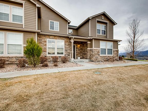 Welcome Home to this Gorgeous 2 Story Townhome w 2 Beds & 2.5 Baths Boasting Unobstructed Sweeping Mountain Views! Popular Open Floor Plan is Inviting w Spacious Living Room Featuring Stunning Mountain Views, Wood Flooring throughout Main Level & Ceiling Fan. Informal Dining Area is Open to Living Room. Kitchen is a Delight Boasting Plenty of Storage Space in Upgraded Maple Cabinetry & Pantry, Lots of Counter Space, Sleek Black Appliances, Breakfast Bar Pass through Framing Picturesque Mountains. Upper Level Offers Spacious Vaulted Master Suite w Walk-in Closet, Ceiling Fan, Art Shelf & a 4-Piece Master Bath. 2nd Bed Suite w Private en Suite Full Bath & Great Mountain Views. Conveniently Located Laundry Closet Upstairs. Main Level Powder Room. Easy Access from the Oversized 2-Car Attached Garage into Kitchen w no Stairs. Extra Storage in Crawl Space. Under 2 Miles to Shopping, Dining, Retail. Short Walk to YMCA & High School. Close to Multiple Trailheads & Golf. Easy Access to I-25.