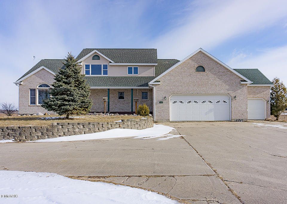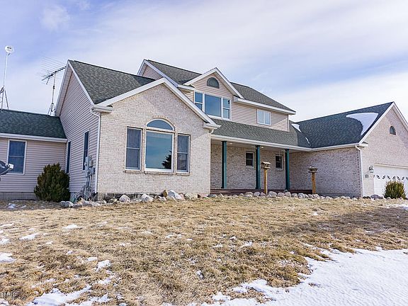 This magnificent home features 5 bedrooms, 3.5 bathrooms and a 1700 sq. ft. basement; you will have all the space you need. The living room features a vent free fireplace with a 16 foot peak ceiling that spills over into the kitchen featuring custom hickory cabinets and wood floors. Master Suite with a very large bathroom and walk-in closet is on the main floor along with laundry. All of the bedrooms are very large in size. Step out onto the amazing deck and peer out over the 20 acres of land perfect for summer night bonfires. Pole Barn is right out back for storage or animals with even more space available in the 3 stall attached garage. Home features a geothermal heating/cooling system and a home warranty. Don't miss out on this one.