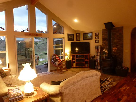 5+ acres of quiet country living-Ranch with walkout basement. Open living concept, beautiful details in woodwork. MB with BA spa 5pc, inc jetted tub, and walk in closet. Lower level FR, BED, BA with walk in shower, and kitchenette all with views and private deck. Oversized garage. Greenhouse! BARN 24X40 +9'overhang. Cross fenced for horses. Natural spring fed pond. 360* Views and your own rock outcroppings. Borders PIKE National Forest with trail access, and ATV/multi-use trail system adjoins Rainbow Falls. 10 miles to Woodland Park or 10 miles to Deckers Gold Medal Fishing. LIVING PARADISE