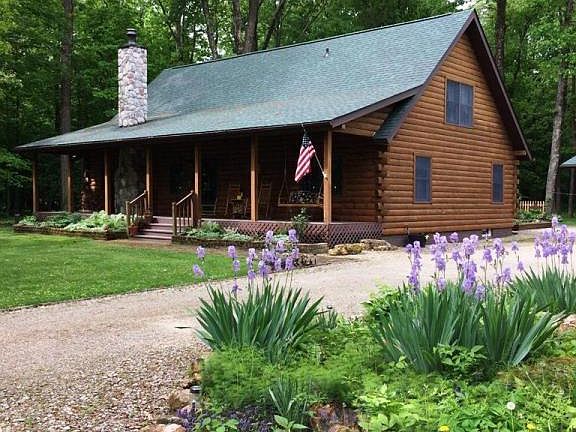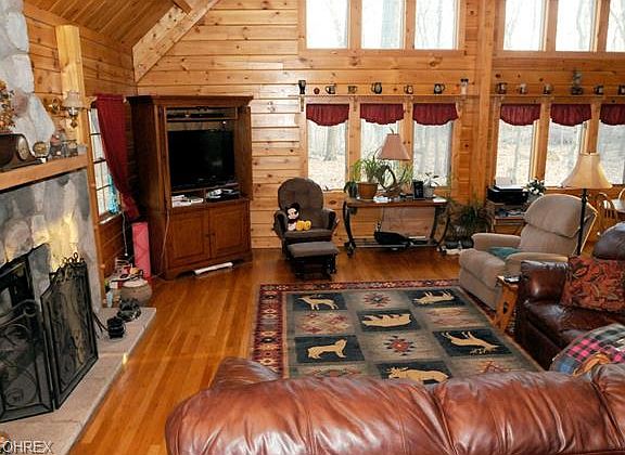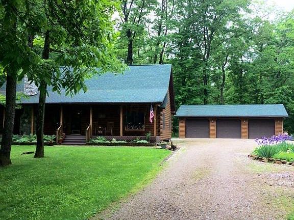 Relax and enjoy the country views from this beautiful Log Cabin on almost 5 acres, in Lakewood Schools. 3-BR, 2-BA, with a 3-car, detached garage, outdoor shooting range, full basement, rear all seasons room,1st floor master suite with jacuzzi tub, cathedral ceilings, loft, wood burning fireplace, and great room ceiling fan. Generator access available. Home has new lighting, new flooring in bathrooms, new kitchen counter tops, new heating system, newer hot water tank and newer roof (2 yrs old). Kitchen appliances are less than a year old and stay.