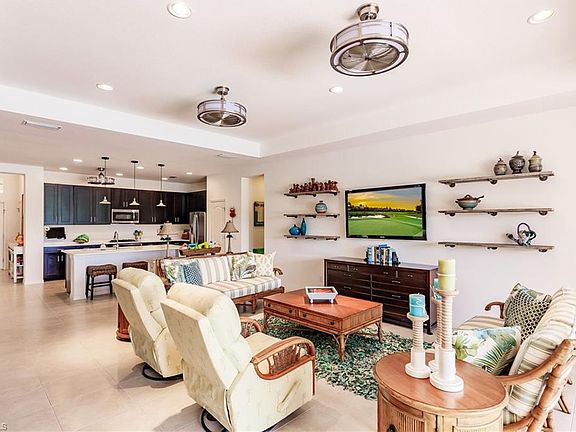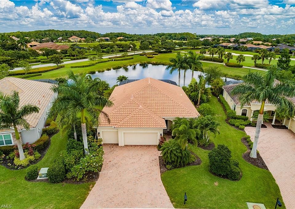 Spectacular Daybreak model by Neil with upgrades and features that makes this home a rare find. An open floor plan greets you as you enter this 2446 sq. ft. home with 4 bedrooms and 3 baths. Situated on an oversized lot with both a Lake and Golf view with a northern rear exposure, this home feautures a 3 car extended garage, custom POOL/SPA w/SunShelf and bubblers, extended lanai & pavers, custom landscaping and exterior lighting, extensive and upgraded interior light and fan fixtures. This Beautiful home has a large dining room area for multiple purposes with an open view of the family room, kitchen and Lanai. Bedrooms are large with spacious closets and split from the master for privacy. Laundry room is separate with cabinets and a sink. This home has Hip roof which is favorable for insurance purposes. It has been meticulously cared for and is move in ready. Situated in a very desirable neighborhood and part of the Verandah community where you are able to enjoy 2 championship golf courses, tennis, fitness, bocce, kayaking, dog park, playground area, multiple restaurants, community pool and 9 miles of walking and jogging. Come secure your place in Paradise now. Home will not last!
