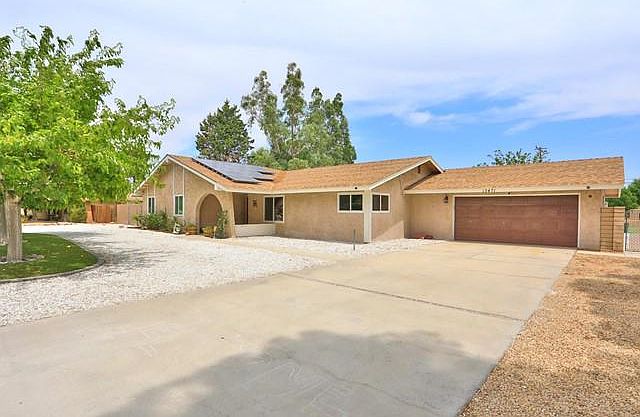 WOW!!! Check out this beauty. This gorgeous home has it all. Great location in the desirable Desert Knolls area of Apple Valley. New custom landscaping front and back yard, fenced, crossed fenced, mature shade trees, above ground pool, back covered patio, concrete driveway, R.V. parking and plenty of room for all your toys sits on a spacious level lot. New Windows through out, new custom flooring, spacious kitchen with tons of cabinet space and granite counter tops. Formal living and dining room along with a family room with a wet bar and fireplace. Four large bedrooms which one is used for a in home office with custom built-in desk, shelving and cabinets, photo's of that room to follow. Water softener, storage shed, finished garage with storage. The list goes on....Very well maintained and move in ready.