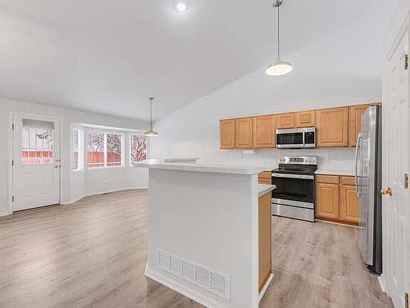 Lovely single family, three-bedroom, ranch-style home, on quiet cul-de-sac in nice neighborhood. Clean, open floor plan, with large windows providing bright natural light; freshly painted, with new stainless-steel kitchen appliances; pantry, bay windows, vaulted ceilings, cozy gas fireplace, and vinyl planked flooring. Master suite includes five-piece bathroom and large walk-in closet. Huge unfinished basement provides lots of storage and exercise/play space. Main floor laundry room with washer, dryer, utility sink and storage. Central air conditioning and ceiling fans. Three-car attached garage, spacious composite deck and large fenced yard with many trees for shade. Easy access to lots of walking/bicycle trails. Walking distance to elementary and high schools, Trail Winds open space, fields and recreation center, playgrounds and swimming pools. Close to grocery store, and restaurants. About three miles to Eastlake light-rail station. All applicants must submit Zillow rental application AND pay the non-refundable application fee. No smoking allowed. Pets permitted (limit two - see manager). Owner pays HOA fees, but all HOA covenants strictly enforced (see manager). Renter is responsible for water (owner shares cost during spring/summer watering season, see manager), trash and recycling (City of Thornton), gas and electric (Xcel Energy), all other utilities, weekly lawn mowing (seasonal) and timely snow removal.