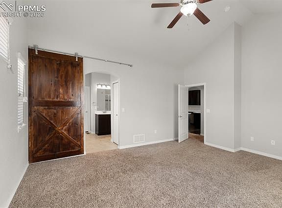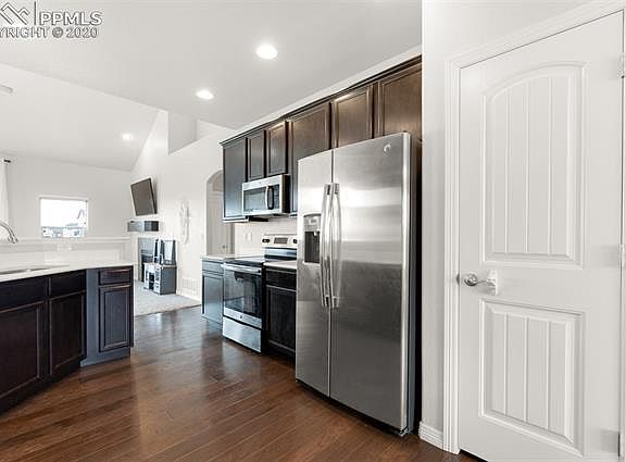 Your beautiful home awaits you! This gorgeous 2 story St Aubyn home is located in the desirable neighborhood of Meridian Ranch. This house boasts a 3 car garage, 3 bedrooms upstairs, a big backyard with patio, views of Pikes Peak and a great floorplan. The kitchen includes slab granite countertops, plenty of prep and storage, a pantry, beautiful dark wood floors, and SS appliances. Grab a snack or morning coffee at the breakfast bar or conversation during dinner prep. The spacious living room has large windows that let in lots of natural light and a cozy gas fireplace for chilly evenings. There is also central air to keep you comfortable in the summer. Upstairs you will find the master bedroom that adjoins to the 5 piece master bath featuring a barn door and walk-in closet. The basement is fully finished including a large rec room with enough space for everyone's interests. Guests will feel right at home with 2 spacious bedrooms, a guest bath, and a private place to hang out when needed. Plenty of room to add a bar and game table. The 3 car garage includes shelving. This gorgeous home isnt going to last long! Come see it today! This home is located close to schools, parks and shopping.