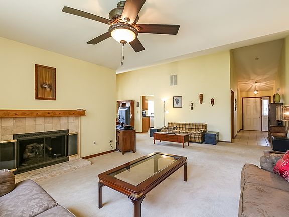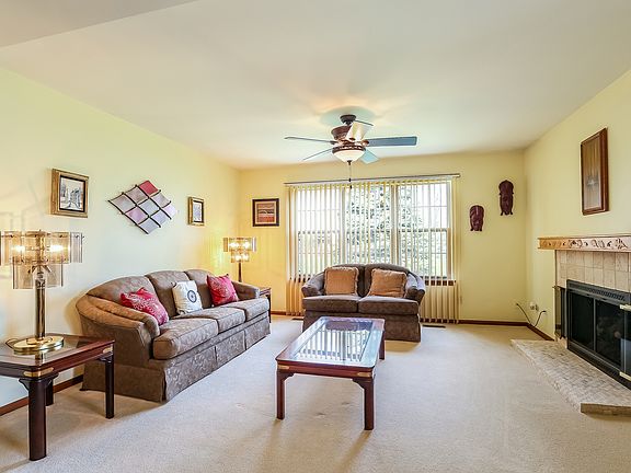 55+Living at its best in The Carillon Community! Spacious & Bright, 2 bedroom, 2 bath home on a nice lot. Large master suite with 2 closets. Extra bedroom for guests or den/office. Large living room with gas remote fireplace and hand carved mantle. Dining room with vaulted ceiling. Three season porch with loads of windows. Eat in Kitchen with newer appliances, new backsplash and countertops. golf, swim & enjoy.