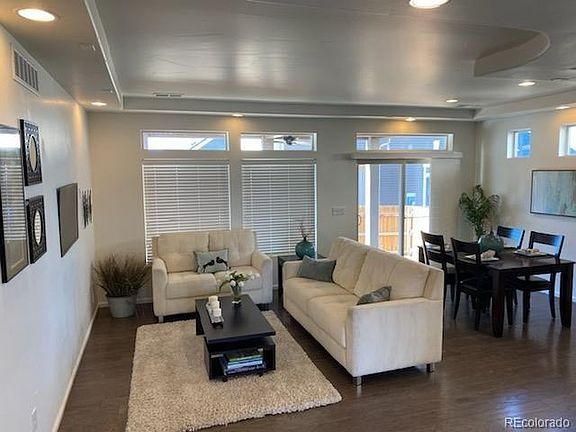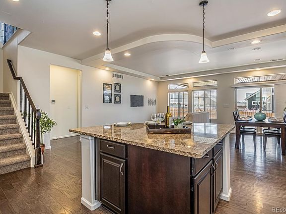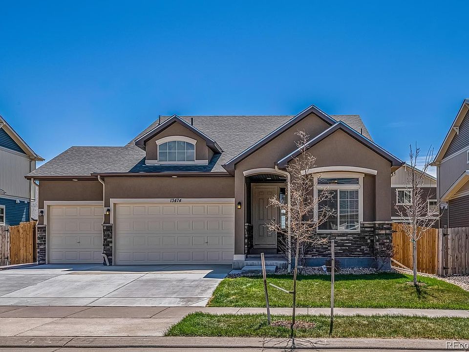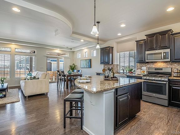 Better than new! Immaculate Two Story - Four bedroom, - four full bath home with 3 car garage and all the amenities of a custom home. Open floor plan with Staineless Steel Appliances, Granite Counter tops, espresso cabinets and white country farm sink. All window blinds included with the property. Large kitchen island with breakfast bar seating open to Great Room and Dining Area. Large main floor Master Bedroom with 5 piece master bath en suite. Main floor secondary bedroom with en suite full bath. Second floor boast a large loft with bedroom and en suite full bath. Finished basement includes a large family room, 4th bedroom and another full bath. Beautifully finished stamped concrete covered patio with exterior ceiling fan and mountain views. Nicely landscaped and fenced yard just steps away from public park and playground. Neighborhood has miles of walking and biking trails. Professionally cleaned and move-in-ready! Quick possession! Take a virtual tour with the 3D matterport ! PLEASE DO NOT PARK ON THE DRIVEWAY!