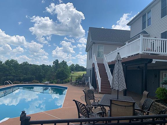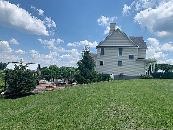 This STUNNING custom built modern farmhouse has 4 bedrooms, 3.5 baths and is situated on 19.96 acres of beautiful countryside views in California,KY. This well kept property adjoins the creek and has a fully stocked pond. On the property is a 30x40 metal pole barn with lean to and horse stalls. This remarkable 3400 sq. ft. home offers cathedral ceilings in the foyer and great room along with a show stopper of a stone fireplace from floor to ceiling. Kitchen features cherry cabinets, stainless steel appliances, corian countertops with eat in bar and breakfast nook. Striking formal dining room with columns, chair railing and lighted tray ceiling. Spacious and cozy master bed and bath with crown molding, jetted garden tub and walk in closet and shower. The unique second story offers 3 bedrooms and a shared full bath with striking views. Full finished basement includes family room, game room area and additional room for guests with full bath and a one of a kind gorgeous open concept tiled shower. Storage room and walk out basement door to patio area under the large composite deck. The BEST part is saved for last with the pool and patio, a true backyard oasis and a real MUST SEE! Beautifully manicured landscape bring all the areas surrounding the home together including the pool house and custom built fire pit and rock wall bench for all your entertaining dreams. All of this is minutes away from Highway 27 and the AA in the Campbell Co. School district as well as the highly sought Grants Lick Elementary. Schedule your appointment FAST before this is gone!
