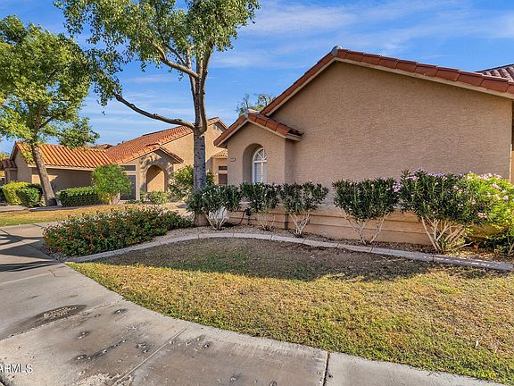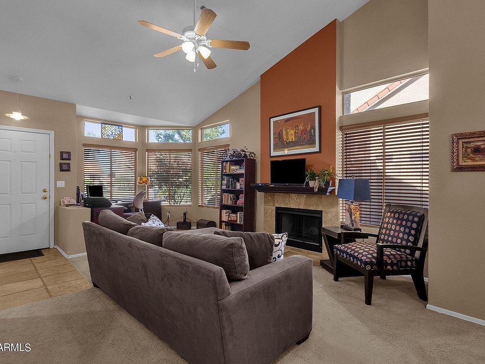 Comfy and cozy, but with plenty of room to roam, this lovely home boasts a truly terrific North Scottsdale location close to a wealth of shopping, dining and entertainment venues â€'' plus it's only a proverbial hop, skip and jump to Loop 101, allowing you to travel pretty much anywhere in the Valley via freeway. Very warm and welcoming, the light-filled living room is flattered by a wall-inset fireplace, a soaring vaulted ceiling motif and a bright and open bayed area backdropped by a trio of double-tiered windows. The adjacent dining room is around the corner from the sparkling kitchen, host to jet-black appliances, beautiful thick-edged granite counters and handsome raised-panel cabinetry. (PS: Sliding doors to the patio make it easy to enjoy dessert or cocktails alfresco.) Both of the bedrooms are nicely sized and both include large closets. Meanwhile, the petite backyard has space for you to add a spa or perhaps a small spool whatever suits your lifestyle. Also of note: The home's soft neutral paint is interspersed with bolder accent walls that pop the décor with just the right amount of pizzazz. 2BD; 2BA; 1,213SF.