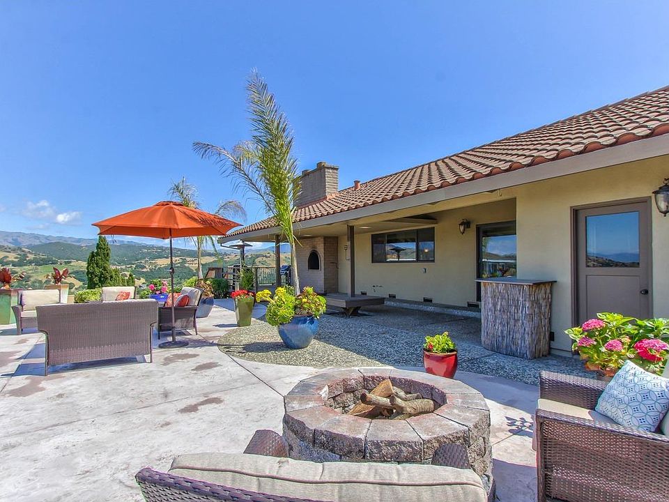This home sits on a ridge with amazing views and has 2300-sq.ft. of living space. Four bedrooms and two baths, a large three-car garage, and a great large patio to relax and take advantage of the scenery and have great BBQs outside on the deck. Lots of parking area and open beamed ceiling in the living room, which also has great views.