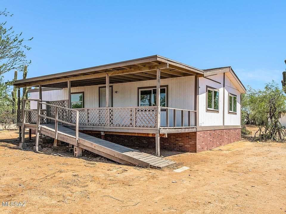 Discover this beautifully renovated 3-bedroom, 2-bathroom manufactured home nestled in the charming Picture Rocks area. This residence has been thoughtfully remodeled from top to bottom, featuring a new roof, new HVAC system, new septic tank, and new dual pane windows. Inside you will be greeted with an open floor plan, LED lighting, new flooring, and tiled showers. Enjoy the fully enclosed acre with beautiful desert landscape, the front and rear porch/deck are perfect for outdoor gatherings. One year home warranty is offered. Stainless steel appliances to be installed prior to closing.10 year roof warranty! Owner/ Agent