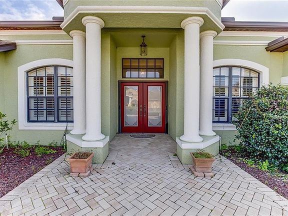 If you've been waiting for the right pool home to come along, you've found it! This gem is located in gated Pristine Place. The wide, paver-lined drive leads up to a double door entry, through which you'll find a lovely open floor plan with soaring ceilings, crown molding in the living areas, and plantation shutters. It also boasts a sizable den/office space with updated laminate flooring, which could become a 4th bedroom, home gym, or playroom. The large living room has a gorgeous tray ceiling with crown molding and is filled with natural light streaming in from the sliding glass doors leading to the pool area. Bright and airy, the kitchen boasts beautiful wood cabinets, Corian counters, a breakfast bar, pantry, and a big eating nook overlooking the lanai. Split bedrooms mean the spacious master suite is a private oasis with a walk-in closet. The master bath includes dual sinks, a garden tub, and large walk-in shower. And what better way to enjoy sunny Florida days than by spending them poolside? There are covered and open spots on the lanai so you can stay in the shade or catch all the rays you want, or cool off in the in-ground pool! Pristine Place has some top-notch amenities, including a clubhouse, community pool, fitness center, playground, library, and more. It's close to the Suncoast Pkwy for easy access to Tampa, and also near schools, shopping, and dining options. You simply must see this home in person! Repaired sinkhole.