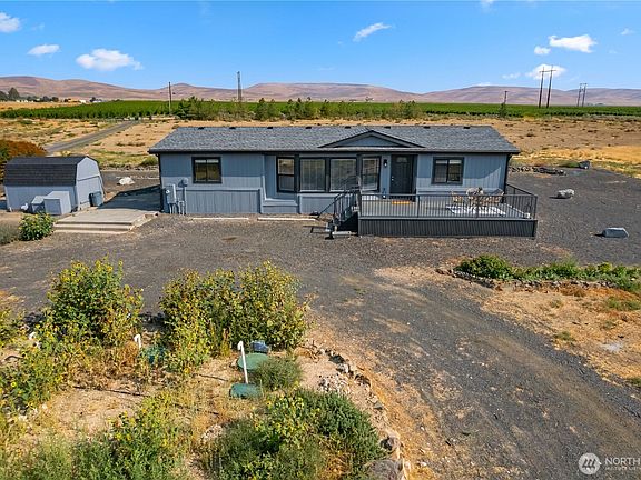 From sunrise to sunset, enjoy breathtaking Quincy Valley views from this 9.75-acre property. A 3-bed, 2-bath MFH has been refreshed with new deck, flooring, trim, and paint. Two 30x50 state-of-the-art greenhouses with heated floors, grow lights, and climate control are ready to produce. A private well with dual 3,000-gal. tanks supports agriculture or expansion, plus a shop and buildable lot with ADU potential. Zoned ag use—ideal for vineyard, nursery, lavender, or Christmas trees. Three acres are cultivated and ready to plant; the balance is natural high-desert landscape enhanced by lilacs, sumacs, lavender varieties, and a sunflower garden. Buyer to verify. Professionally inspected!