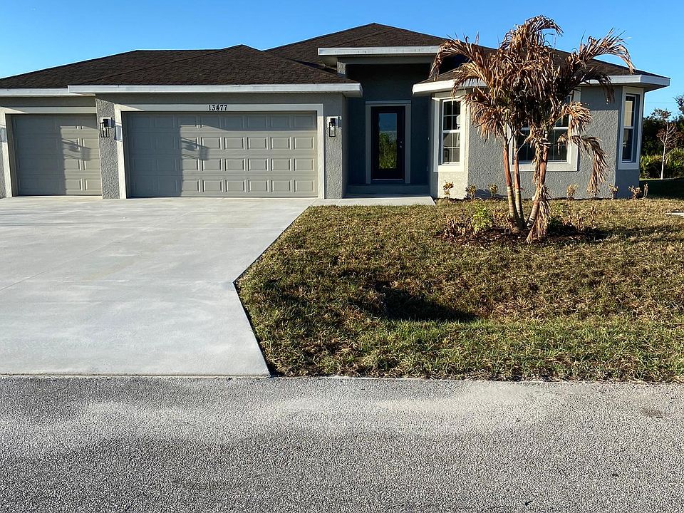 Brand new 2022 South Gulf Cove home . 3/2 1800 sq ft , 3 car garage. Tile plank flooring thru out w/granite countertops and stainless steel appliances. $2800.00 per month/12 month lease w/1st/last/security. Pets on a case by case. $75 non refundable background/credit check. Pets allowed on a case by case basis. Nonsmoking home. Renter responsible for utilities.