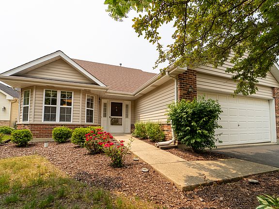 This is a 55+ ACTIVE ADULT COMMUNITY. The Burton model is 1663 sq. ft. ranch home featuring 2 bedrooms, 2 bath, and a 2-car attached garage. The oversize primary bedroom has 2 closets, one a large walk-in, and a private bath with soaking tub, separate shower and single sink. Combo living/dining room with vaulted ceilings. Kitchen has been updated with granite counters, SS appliances and hardwood floors and a pantry closet. Large laundry/utility room. 2 car attached garage. Oversize concrete patio off the living room. Carillon is an ACTIVE 55+ adult community w/3 9-hole golf courses, Pro shop, (3) pools, Tennis & Pickle ball, Boccie ball, game and craft rooms, lots of Clubs, Activities & Planned Trips, restaurant, and ponds for fishing. Easy access to I-55. It's time to take a permanent vacation from lawn maintenance and snow shoveling. Guard Gated community.
