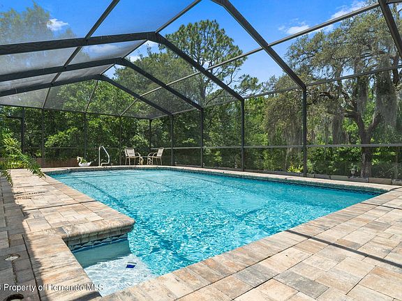 Stunning, meticulously maintained 3-Bedroom, 2-Bathroom Pool home on over 3/4 of an acre, in the beautiful community of The Oaks. This home invites you in with a large, manicured front garden into a screened, double door entry. A large, tiled foyer greets you and opens to the expansive living room with dual pocket sliding glass doors overlooking the rear lanai and pool. The views from the breakfast nook morning or afternoon are breathtaking. Entertain with ease and plenty of space using the large dining room and separate breakfast nook also overlooking the lanai and pool. Cook like a chef in the spacious kitchen including stainless steel appliances, pantry, eat-in breakfast bar, stone countertops, and tons of cabinet space. Retreat to the owner's suite of this home showcased with walk-in closet, sliding glass door to the lanai, separate vanity space with dual sinks, private toilet closet, large tiled shower, and storage galore. Guests can enjoy their own privacy utilizing the two generous guest bedrooms, both with ample closet space and share the true pool bathroom. Inside utility room with tub sink makes laundry a breeze. Additional office/den space, under heat and air, within the garage provides plenty of space and privacy for hobby work or any desired project. Additional features of the garage include pull downstairs to the attic space with plywood flooring for increased storage, workshop space with shelving and work bench, garage door opener, epoxy flooring, side service door, and screened garage door. Enjoy the best of the Florida lifestyle with the massive rear lanai and screened pool cage perfect for escaping the heat. Additional open, paver patio outside the pool area with vinyl privacy fencing provides more space for plant lovers or pet owners. 5 zoned irrigation system and exterior storage under the roof make gardening and lawn maintenance easy as can be. Take advantage of one of the lowest HOA fees in the county in the gorgeous neighborhood of The Oaks. Don't miss the opportunity to call this beautiful home yours! Book your private showing today before it's gone!