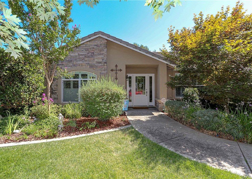 Gorgeous 4 bedroom, 2 bathroom home on a cul-de-sac in the desirable Oakmont Village. Pride of ownership is evident both inside and out. The large kitchen features granite counter tops, abundant storage with pullout drawers in the cabinets, stainless steel appliances, reverse osmosis,a newer glass tile back splash, and a built-in Hoosier hutch. The master bathroom has double sinks with granite counter tops, a jetted tub, and floor to ceiling built-in storage in the walk-in closet. Relax in the backyard under the pergola that runs the length of the patio and enjoy the lush landscaping. It is an oasis and low-maintenance due to the drip system for the hanging plants, potted plants and flower beds, all on a timer. The three-car garage has built-in storage. Plantation shutters throughout, a water softener, a gas fireplace with remote control, a whole house fan, and smart features such as a Ring doorbell and camera and thermostat and irrigation system round out the many perks of this fine home.