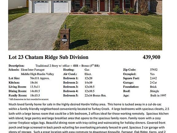 This 2642 square foot single family home has 5 bedrooms and 3.0 bathrooms. This home is located at 1348 Chatam Ridge Ln, Knoxville, TN 37932.