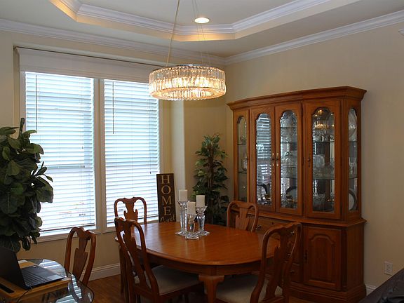 Beautiful newer home in Georgian Manor! Open concept Living room with gas fireplace, ceiling fan, & tray ceiling. Dining area with crystal chandelier. Nice size kitchen with lots of cabinets: rollout drawers & lazy susan, granite counters & backsplash, island with seating area, pantry closet, stainless steel appliances, which include a built in microwave and oven, & gas cooktop. Newer refrigerator, dishwasher, & touchless faucet. Laminate flooring & crown molding, carpet in primary bedroom. Indoor laundry w/ washer & dryer & storage cabinets. Hall bath w/ granite counter & single sink, tile shower, & tile floor. Primary bedroom w/ walk in closet, crown molding, and tray ceiling. Rejuvenate in this gorgeous primary bathroom with granite counters & double sinks, jetted tub with granite tub deck, separate stall shower with tile surround, & linen storage. At the exterior: fencing around home, low maintenance yard, artificial grass, patio pavers, storage shed, gazebo staying, & Ring doorbell. Ceilings fans in living room & all bedrooms. Window A/C unit in living room. Across from guest parking & down the street from the clubhouse which offers a pool, spa, sauna, billiard room, & library area. Low space rent includes water & garbage. Great commute location: close to hwy 880 & 92.