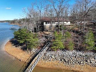 Are you looking for a lake house with a million dollar view ? This is it beautiful point lot with 350 ft of year around water on beautiful dismal creek 2 bedroom 2 full baths with a heated and cooled bonus room in basement with Gas log fireplace. Large great room upstairs with wood burning fireplace. House has eat in kitchen and two bedrooms on main level, large back deck on lake side and a double slip dock with your own boat launch on property that is a shared with neighbor. Home come with generator that will run entire house. To much to mention must see call for private showing