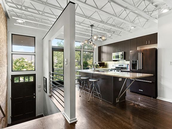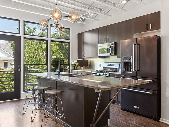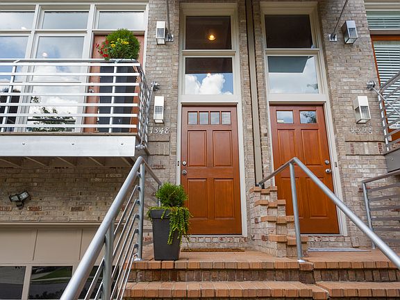 The epitome of industrial chic, this impeccable modern townhome is situated on the best street in highly desirable Fernwood Park - in the heart of all that downtown Brookhaven has to offer. Walk to the abundant array of boutiques and restaurants just around the corner in Dresden and shops at Brookhaven Village. Inside this renovated "show-stopper," sleek luxury finishes abound including recently refinished hardwoods, dramatic open trusswork 10'+ ceilings, designer lighting and exposed brick walls throughout. The two-story foyer opens to the main living level boasting huge floor-to-ceiling windows flooding the interiors with natural light. The designer kitchen anchors the main level with sleek custom cabinetry, an oversized quartz island, stainless steel appliances and the perfect balcony for gardening off the kitchen. The expansive dining room connects the kitchen and living area and is highlighted by the stunning 3-story oversized spiral stairwell spotlighted by a huge skylight. The indoor/outdoor living room serves as the heart of this home with an inspired gas-fireplace and a wall of glass opening out to the private rear yard, which backs up to the community greenspace. Once outdoors future residents can take advantage of the fully-stubbed gas grill and fenced rear yard. Being fee simple is quite advantageous as having your own yard in a townhouse is quite rare. It is even equipped with an outdoor storage space. The upper of the three levels is reserved for rest & relaxation, housing the Owners' Suite and secondary bedroom. The oversized Owners' Suite has plenty of room for a sitting area and massive arched windows overlooking the serene gardens of the community.