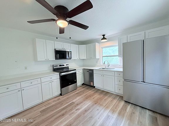 Welcome to San Juline! This newly renovated 2 bedroom, 1 bathroom home has undergone thoughtful updates, featuring a spacious living room ideal for both relaxation and entertaining. The kitchen is equipped with new, modern stainless steel appliances and exquisite quartz countertops, combining both functionality and a refined aesthetic. For your convenience, a new washer and dryer are also included. The property further offers a separate dining area and a dedicated office space. The expansive master bedroom includes a slider that opens onto a generous deck. Outdoors, the property boasts a large, fenced-in yard, ensuring privacy and ample space for various activities. Its location within the esteemed St. Johns school district makes it an exceptional choice, and it is also conveniently close to a variety of local attractions. This home is pet-friendly, subject to approval and an additional pet rent of $25 per month per pet. For the comfort of all residents, smoking is strictly prohibited on the property. Furthermore, renter's insurance is a mandatory requirement for leasing this home.