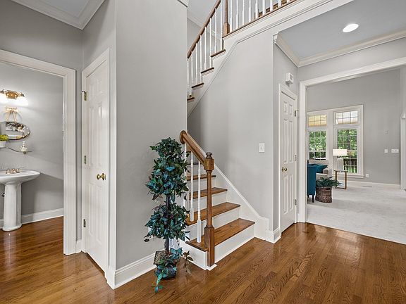 Gorgeous custom home is an entertainers dream both inside and out! A grand 2 story foyer opens to a welcoming 2 story living room complete with gas fireplace & custom trim. Hardwood floors flow through the first floor from the foyer to the dining room, kitchen & breakfast area. First floor owner's suite has private access to the beautifully landscaped, outdoor living area complete with salt water pool, screened porch, deck and partially fenced yard with mature trees for privacy. 2 secondary bedrooms, bonus room and massive walk-in storage finish out the 2nd floor. New carpet and paint throughout. Close to future 540 access & just 20 minutes drive to Downtown Raleigh.