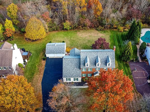 Welcome to this beautifully maintained stately brick-front Colonial set on three-quarters of an acre in the highly sought-after Winding Brook Estates of historic Towamencin Township. Perfectly positioned on one of the community’s finest lots, this home offers a picturesque setting backing to mature trees for exceptional privacy and tranquility. Step inside the grand two-story foyer featuring a coat closet and gleaming hardwood floors that flow throughout the first and second levels. The spacious family room showcases a large triple window that fills the space with natural light and a wood-burning fireplace with elegant marble surround. The first floor features 9-foot ceilings and a timeless center hall design with crown molding and chair rail in both the formal living and dining rooms. The kitchen is the heart of the home with a large island, built-in desk, electric induction range, and doors opening to a generous Trex deck with steps to the paver patio overlooking the amazing backyard. A first-floor study provides the ideal work-from-home space, while the laundry room offers built-in cabinetry, coat hooks, and a sleek stainless-steel utility sink. Upstairs, the spacious primary suite is privately located on one side of the home and offers two walk-in closets and a spa-like ensuite bath complete with a Jacuzzi tub, separate shower, double sinks, ceramic tile flooring, and a vaulted ceiling with skylight. The additional three bedrooms include one with custom shelving and another that’s exceptionally large, all serviced by a bright hall bath with double sinks and a shower/tub combination plus a linen closet. A magnificent walk-up attic provides outstanding ceiling height and the potential for even more finished space — ideal for a studio, playroom, or private retreat. The finished daylight walkout basement adds even more entertaining space, featuring double windows, a walk-out door and several storage closets, and ample unfinished space for even more storage. You will be wowed by the 3 car attached garage plus a spacious 2 car detached garage providing a myriad of uses! The roof, heating and airconditioning systems were replaced in 2020 providing peace of mind for years to come .Set on a quiet cul-de-sac street, this exceptional home is part of the award-winning North Penn School District and offers easy access to the Northeast Extension of the PA Turnpike, shopping, dining, and all modern conveniences. Experience the perfect combination of classic elegance, modern updates, and a serene setting — this Winding Brook Estates gem is ready to welcome you home! Professional photos by 11/5/25