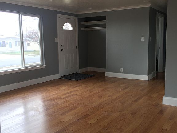 Just remodeled! New: carpet, paint, bathroom redone, AC, black stainless kitchen appliances: gas range, fridge, dishwasher; recessed lighting, fans and light fixtures, garage doors, baseboard and crown moulding, front door. Home has laminate flooring in living areas; washer and dryer; brick fireplace; french doors into additional family room with second back door; oversized detached garage with workshop area, RV parking, fenced yard for kids, pets, garden! Open floorplan, lots of windows, good light!