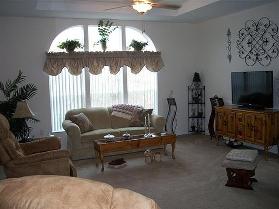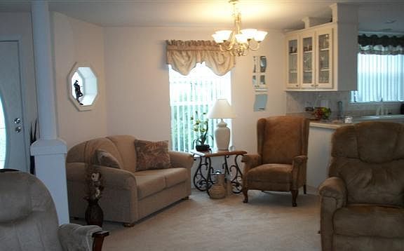 Hard to find buys as good as this! This is a 2br/2ba plus a Den split plan home that is partially furnished. It is a 2005 Homes of Merit with 1568sf of living space not counting the vinyl enclosed FLR on the front. The home has an oversized LR that is perfect for when friends and family visit. There is a formal DR with a deco window. The home has an EIK with loads of cabinet and counter space, even a pass thru bar to the DR and some glass front deco cupboards. This KIT also has recess lighting, tile floors and a pantry. Both of the BR's will leave you feeling nothing but comfortable and uncramped. The MBR has 2 walk in closets so no need to argue over closet space, so ladies you can bring all of your shoes! The MBA has 2 separate vanities, tile flooring and a walk in shower with seating. The GBA also has tile floors, a deco window,and a tub/shower combo. Just outside the GBA is extra linen storage. The home is painted in soft colors that you feeling relaxed. The den has a built in desk and shelving, perfect for a home office. There is a large shed with a garage door, shelving, peg board and loft storage. This home has a side by side double carport and it overlooks a tropically landscaped yard complete with your own palm trees and a private back yard. This is Florida living as it was meant to be and the best part is that is has a price that will be hard to beat for this size home! Come take a look today before it is gone! If you are destined for great retirement living than this prestigious Community is where you need to be. This is a 55+ Community where the minimum age for residency is 45 years old. There are activities for every lifestyle in this Community! The amenities are unsurpassed and include a country club style clubhouse, heated pool, spa, shuffleboard, tennis, horseshoes, exercise room, billiards, library, bingo, and a ballroom. It also has secured RV & boat storage. This is a pet friendly Community so your pets can enjoy the pampered lifestyle too! If location is important to you than this community will not disappoint you there either since it is located just 10 minutes from Disney and all of the Orlando attractions. You are also encompassed by a wide variety of shopping, restaurants, churches, medical facilities, numerous golf courses and Polk Countys 550 lakes. Within an hour is a major airport and Floridas famous white sand beaches. You are also within 30 minutes of Historic Bok Tower and Legoland. Sports fans you will love calling this Community home because you are minutes away from the Spring Training home of the Atlanta Braves. This Community takes great pride in its well maintained lots. You are surrounded by a warm tropical breeze blowing through the palm trees from the minute you enter the community. It represents everything the Florida lifestyle is all about. Spend the day at the pool soaking in the sun and the evening at Disney watching the fireworks. Davenport is located in the heart of Central Florida and has a population of around 5,000. It also has some of the most affordable living in the Orlando/Kissimmee area. Potential residents must meet the age requirements of the community for residency. This community requires that at least one homeowner be 55 years of age or older. Other residents must be a minimum of 45 years of age. All potential residents must be approved for residency prior to purchasing a home. The Thompson Team will be happy to assist you with the approval process. When looking for your new dream home, remember the advantages of a resale home such as this in a leased land community. You benefit greatly by purchasing in a leased land community as you do not have to pay property taxes! Included with all homes that we sell at full asking price is a 1 year home warranty which covers plumbing, electrical appliances and more. Financing is also available through local Lenders with as little as 25% down. One of our Sales Consultants would be honored to show you this fine Community or any othe