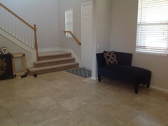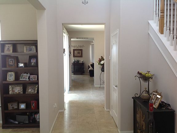 Great 5 bedroom 2.5 bathroom home located in the Colonies community of Upland. This home features views of the lake and mountains. Open floor plan with high ceiling. The kitchen features a center island and granite counter-tops, beautiful cabinets, eat-in area, and is open to the family room with a nice tiled fireplace. The master bedroom includes a walk-in closet and master bath complimented by a dual vanity, tile shower and soaking tub. The downstairs den is ideal as an exercise room or a game room. Sli ding glass doors in kitchen lead you to the patio area and spacious back yard. Home also offers a 3-car tandem attached garage, central A/C, recessed lighting. Located near the walking path which takes you around the lake, restaurants, shops and much more.