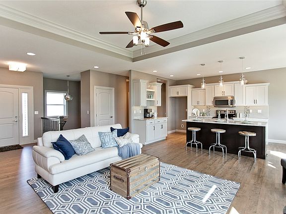 JW Home Builders home! Walk into this custom built home and be immediately impressed with the beautiful hardwood floors throughout the main. Art niche, stone fireplace with large mantle centered perfectly amongst the great room that also offers crown molded trey ceiling for perfection! Enjoy the chef's kitchen that's been completed with clean, crisp white dovetail, soft close cabinetry, granite, beautifully appointed back splash, hood range for that modern yet classic look and a nice side prep station with open shelving! Signature JW built-in locker off garage. Master bath completed with sleek tiled shower, his & hers dual vanity and private commode. Hand painted wood cased trimmed windows throughout main living, plumbed for audio, central vac, & security, large finished walkout lower level with a bonus area perfect for a home office are just a few more of the added perks This home is a must see & ready to be yours now!
