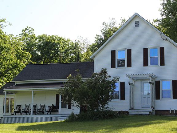Open House! Saturday, June 1 from 2 - 4 pm. A Classic New England Farmhouse with many upgrades, including the kitchen! Enter through the large screened-in porch into a spacious open concept living area. Off the kitchen is the pantry and laundry. The first floor also offers a master suite with windows bringing the outdoors in. Above the master suite is an unfinished space that could be reclaimed. On the second floor there are three bedrooms and a 3/4 bath. Below it all is a full, dry basement with one finished room and the possibility for more! Outside, stone walls run throughout the 12-acre property which has flower gardens and a private pond. Plenty of extra space in the heated, 2 door, oversized garage with work shop! When you are finally settled in, just enjoy the view off the famer’s porch!