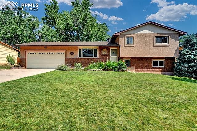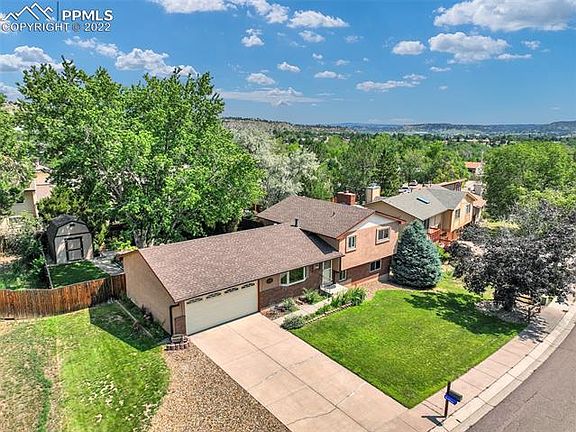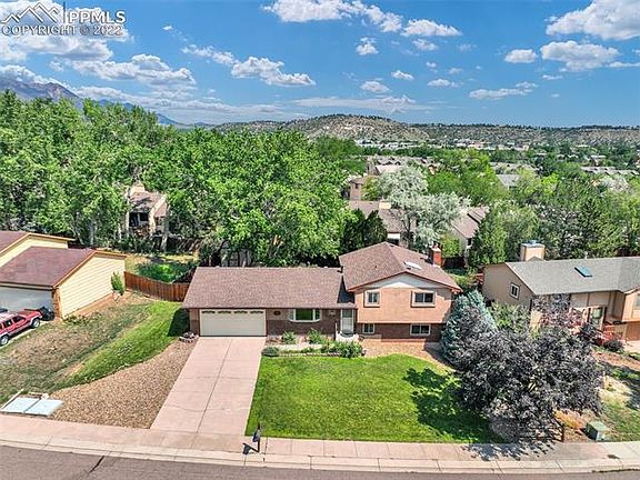 Meticulously maintained and clean as a whistle! Don't miss this beautiful move in ready, pet free/smoke free, 4-level home on a quiet cul-de-sac west of Centennial Blvd in Holland Park. This home has wonderful curb appeal with a fully landscaped and mature front and backyard, as well as offers a low maintenance brick and stucco exterior. From the moment you arrive you will quickly notice and appreciate the upgrades and pride of ownership displayed throughout the home. You will love this spacious floorplan that provides plenty of space for everyone featuring 3 bedrooms on the upper level, 1 bedroom on the lower level and a rec room/game room and a private office area on the 4th level. The large front bay window, vaulted ceiling and garden level windows on both the 3rd and 4th levels bring in loads of natural light and give this home a bright and airy feel! Newer oak cabinets with soft close drawers, a ceramic top range/self-cleaning oven, like new stainless steel KitchenAid dishwasher and upgraded sink and light fixtures help make the kitchen/dining area shine - there is even a crystal chandelier! Upper and lower level baths feature beautiful custom ceramic tile in tub, showers and flooring. New Champion vinyl windows were installed in 2008 through much of the home with high quality Hunter Douglas window coverings. Take a walk out from the dining area to enjoy your morning coffee and delightful backyard on the custom-built Trek deck with decorative metal railing. You will love this backyard which offers mature trees, just the right amount of shade and privacy ~ plus a 10 x 12 Tuff Shed to store those extra tools & toys! The neat as a pin garage features a concrete coated floor and a new steel insulated door installed in 2020. New furnace and A/C were installed in 2009/2010 timeframe. All of this plus close to shopping, schools, restaurants, Garden of the Gods Park and UCCS. No HOA! Taxes may increase as current owners are utilizing the senior Homestead Exemption.
