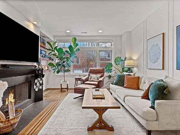 OFFERS RECEIVED. HIGHEST AND BEST DUE MONDAY 1/19 BY 8AM. Welcome home to this rare elevated first floor simplex two-bedroom, two-bath residence in the heart of Lakeview. Refinished oak hardwood floors flow throughout, complemented by a warm wood-burning fireplace in the main living area. The beautifully appointed kitchen features 42" cabinetry, an oversized breakfast bar, designer backsplash, and a full stainless steel appliance package, opening seamlessly to an additional living and dining space with a second fireplace. The primary suite offers a spa-inspired ensuite bathroom with marble tile, dual vanity, whirlpool tub, and a separate glass-enclosed shower. A generously sized second bedroom includes a custom Murphy bed, ideal for flexible living. Both bathrooms have been fully renovated, while the living areas and hallways are enhanced by elegant wainscoting and updated designer light fixtures. Enjoy outdoor living on the private rear deck, along with access to an expansive common garage roof deck. All major mechanicals were replaced in 2021, including furnace, A/C, water heater, and washer/dryer. One outdoor parking space included. Located in a solid brick masonry building within the coveted Burley Elementary district, just steps from Southport Corridor dining, shopping, Whole Foods, and the Brown Line.