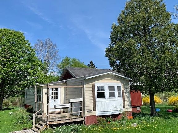 Sweet country setting with 2 bedroom manufactured home, garage/workshop on .83 acres! This 1983 home has a 20x20 family room that was added on approximately 10 years ago. Special features include pellet stove, French doors to family room, manmade pond, flower gardens. Reasonable taxes, affordable property and school choice! Property to be conveyed As Is, Where Is.