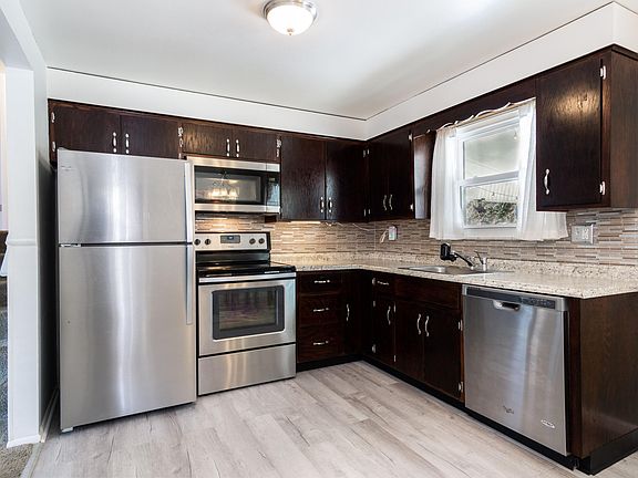 NEW PRICE NOW $215,000. The Buyer of this Great Home will enjoy an Updated Bathroom and Kitchen with Newer Stainless Steel Appliances, New Flooring and a Tile Backsplash. The Bathroom includes a Newer Vanity. Features: Easy to Care for Vinyl Siding, Large Living Room and Lower Level Great Room, Additional Side Entry and Three Upstairs Bedrooms, Detached Two-Car Garage and Covered Back Patio. Home has new windows throughout and a new water heater in the basement.Showings Start Saturday, Feb 5th