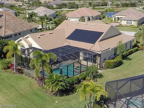 Southern exposure on a freshwater lake! This Rutenberg Custom Home enjoys panoramic views, an open floor plan, and upgrades galore, both inside and out. This 3BR 3BA with Bonus Room and separate home office is spacious and airy, and includes an oversized two car garage. The owners have updated and upgraded many features of the home: Saltwater pool and spa, upgraded 400K BTU gas pool and spa heater, web-based remote pool controls, crown molding, added solar pool heating, upgraded ceiling fans and custom lighting, security system including remote cameras, water softener, MANABLOC manifold plumbing control system, poolside outdoor grill and sink, central vacuum, humidity control system, gorgeous paver brick lanai, dimmers throughout the home, in-wall and a under slab pest control system, terrific mature landscaping and professionally installed landscape lighting, plantation shutters, custom wood shelving in master. Gourmet kitchen with the granite tops and stainless appliances make cooking a joy with the views of the outdoors! Privacy and Old Florida Living with all the perks! Verandah is a sprawling award-winning gated golf and tennis community. It comes complete with 9 miles of biking and hiking trails, dog park, play areas, kayaks for free use by residents, state-of-the-art fitness center, resort style pool, two championship golf courses, five clay tennis courts, fishing in the lakes and ponds, clubhouse with restaurant and pub. This is simply a great house, located in a convenient, warm, and welcoming community. The home is close to both Fort Myers and Punta Gorda airports, and just one mile south of the Caloosachatchee River where you can boat, fish, and water ski. The Lee County Manatee Park is just around the corner. Downtown Fort Myers is nearby and offers wonderful fine and causal dining opportunities. Come and find your slice of happiness!