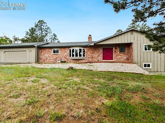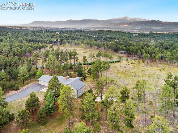 This custom ranch-style home is nestled on a prime corner lot in Black Forest with breathtaking views of the Front Range and Pikes Peak. Located in highly desirable D-20, this home is situated in Falcon Forest, right next to Cathedral Pines. This subdivision does not have an HOA! With 5.13 acres of land, there's plenty of space to enjoy the outdoors and soak in the natural beauty of the area. The home itself boasts 4 bedrooms, 3 bathrooms, an oversized 2 car garage and offers close to 3,500 total square feet. Having access to the original floor plans provides a great foundation for any personalized upgrades or renovations. Fantastic opportunity to make this home truly your own while potentially increasing its value in the process. Being minutes away from Black Forest Regional Park and having access to approximately 6 miles of hiking, biking and horse trails in Cathedral Pines, this definitely adds to the convenience and appeal of this property. With so much potential and in such a desirable location, it's definitely worth taking a closer look!