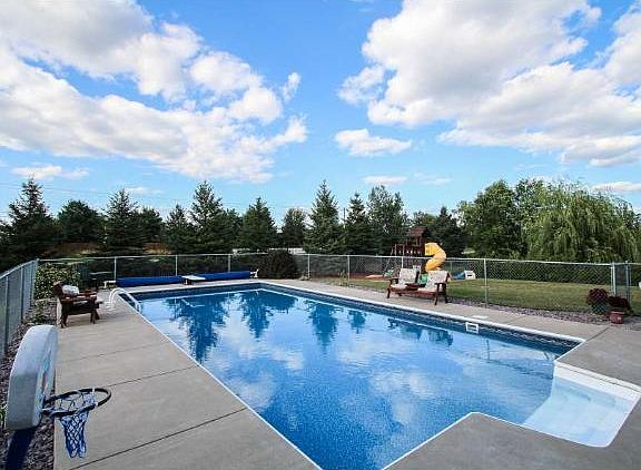 The front porch welcomes you to this beautiful custom built home. Boasts 4 brs, 2 tile baths and a great open floor plan. Enjoy a huge patio leading to in-ground pool and great yard. You'll love the remodeled kitchen w/gorgeous backsplash tile, countertops, pull-outs in the pantry, center island with seating. Generous sized bedrooms, laundry UP by bedrooms offers huge counter and cabinets. Finished lower level nicely decorated too. Extra concrete parking pad and fenced yard. MOVE IN READY!!