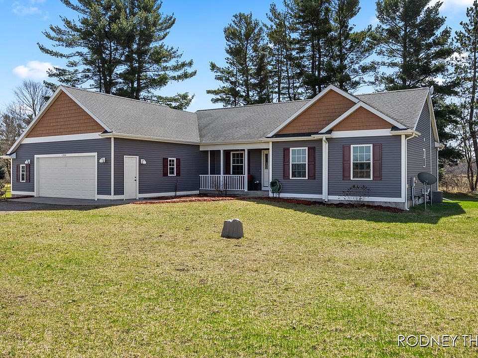 Welcome to this country acre surrounding a wonderful four bedroom two bathroom ranch style home! Featuring a bright and open living room with cathedral ceilings, a dining area with sliders to rear deck overlooking backyard, convenient kitchen (all major appliances to remain), laundry (washer/dryer stay), primary bedroom suite, two additional bedrooms and another full bathroom round out the main floor. Lower level features the 4th bedroom (home office) and there's also a large family/recreation room plus plenty of storage in the large mechanical room. Home is well designed and sits proudly on a nice one acre lot. Paved road provides an easy commute to either Grand Rapids, Greenville or Big Rapids. See this beautiful home opportunity - set up your private showing today!