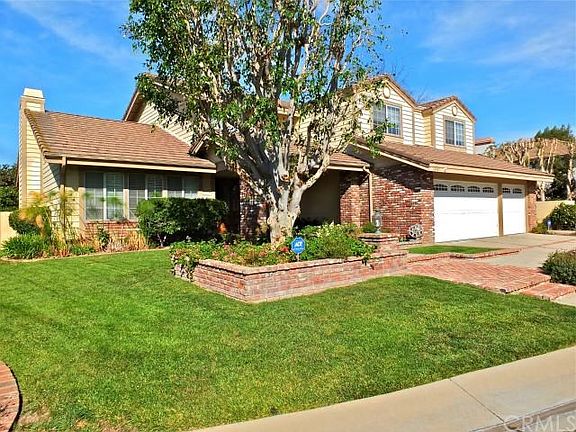 Overlooking a lush orange tree orchard, this impressive property boasts warmth, comfort, charm and a wonderful open floor plan. The brightly lit foyer with vaulted ceilings opens to your formal living room and dining area with fireplace. An upgraded kitchen awaits with granite counters, stainless appliances, and breakfast area that opens to a spacious family room with brick fireplace and access to the lavish backyard. A downstairs bedroom with bath, office nook, another bath and laundry room complete the lower level. As you ascend the stairs to the upper level, you are invited to the master suite complete with vaulted ceilings, a balcony overlooking the backyard and orange orchard, a private bath with a skylight, jetted tub, separate shower, and dual vanity. Completing the upper level are three additional bedrooms and two bathrooms. Each bedroom has it's own bath and two of the bedrooms are a Jack and Jill arrangement. Additional property highlights include: gleaming hardwood floors, central air and heat, security system and a three car garage. The sprawling backyard encompasses an expansive area with plenty of room to add a pool.