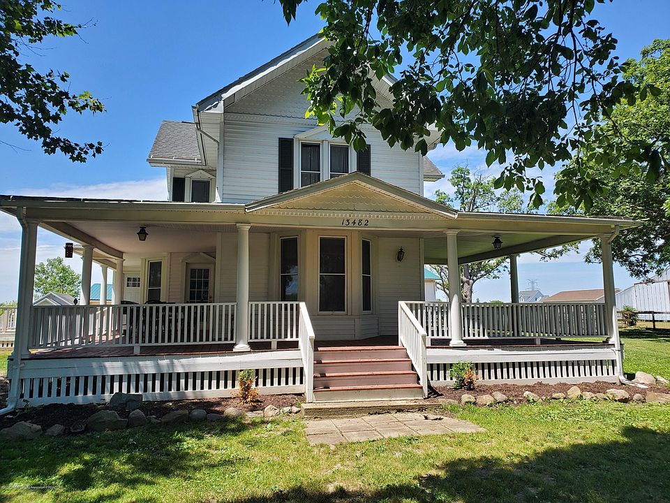 This wonderfully well maintained 19th Century Farmhouse sits on a little over 3 acres and has so many updates throughout. This country farm house has 4 bedrooms, 2 bathrooms and features a large wrap around porch perfect for watching a sunrise while enjoying your morning cup of joe. Throughout the house you will find refinished hardwood floors, a spacious formal dining room that opens up to a family room with a beautiful bay window that radiates natural light. The heated 4 seasons room with tile flooring makes a great bonus space for entertaining on chilly nights. Upstairs you will be welcomed with the smell of cedar lined closets and 4 generously sized bedrooms, and a second stairway. The 80 x 50 Pole Barn is perfect for storing all of your outdoor yard equipment or toys. There are also additional barns on the property that are included in the sale. Don't pass on this gem!