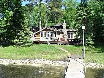 This Rush Lake home is located LESS THAN 40' from the lake! As you can see the home has been completely and very tastefully remodeled! New roof, many new windows, charming French doors, gorgeous pine flooring and carpet, new cedar shake siding, fresh paint inside and out, new kitchen with vaulted ceiling (stainless steel appliances), new bathrooms, new main floor family room with double bunk room, screened gazebo and more! Master bedroom suite includes a kitchenette; free standing gas fireplace and walks out to an enchanting screened gazebo. Beautiful landscaping, flower beds and perennials. The home is west facing for lingering sunset views with docking directly in front of this lake home. The property is located in Island View Assoc. with common frontage (90') on Rush and (500+') on Cross Lake, excellent sand swimming beach. This property is in move-in condition! Right on the water, however the taxes are low. 10% down 3-4 year CD @ 7.5% int 30 yr amortized. New docks & Rip Rap shoreline in 2010/2011.