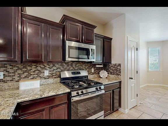 Now available for rent!! In the heart of Horizon City a Beautiful single-story 3 spacious bedrooms and 2 full bathrooms, offering the perfect blend of comfort and functionality. Nestled in the desirable Paseos at Mission Ridge & situated among a lovely tree-lined drive, this home has a very functional floor plan designed for modern living--ideal for entertaining or relaxing with family. The spacious kitchen features a large granite island with bar seating complete with a pantry. Your dining experience will be enhanced with a separate dining room adorned with 3 lovely bay windows.