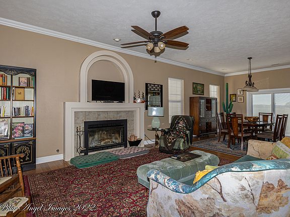 Beautiful 30 ac hobby farm with scenic views on State Highway just minutes from town. Open floor plan on upper floor with bamboo flooring. 4-bedroom, 3.5 bath with updated appliances - gas range, built-in microwave and dishwasher. Includes washer/dryer & fridge. Has water softener and wood burning fireplace with gas starter. Walk-out finished basement, 2-car attached garage. New roofing last year. Also a 30 x 40 ft shop with concrete floor, water, electric and 30-amp RV hookup. Fenced with automatic livestock waterer and seasonal spring. Pet friendly fenced yard on highway frontage and borders County Road on South.