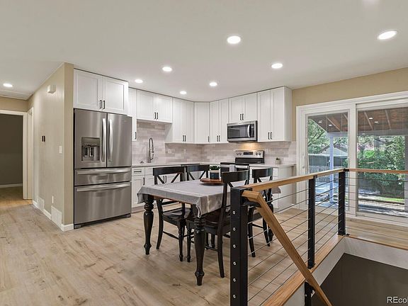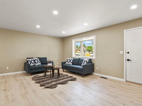 Welcome to 13486 Bryant Way! The home has been very well maintained; the roof was replaced in 5/2024, hot water heater replaced in 2/2024, there is an updated electrical panel, updated windows, updated A/C and furnace, a smart thermostat, and the home will be sold with a Supreme level home warranty through 2-10 Home Warranty. The corner lot provides for an ideal location that is in walking distance to Westlake Middle School and Legacy High School. The home has a concrete RV pad that is roughly 16 by 34 feet long with gated access and a 30 amp plug in. The interior of the home has been fully remodeled. Starting with the kitchen you will find high quality white shaker cabinets with black handles, modern quartz counters, and stainless steel appliances. The kitchen is open to the dining area and living room; all overlooking the custom cable stair railing. There is ample light in the main living area with a large bay window, sliding door off the kitchen, and canned lighting. The primary bedroom has a large walk-in closet that is perfect for storing all of your Colorado gear. The main floor bathroom has a floor to ceiling tiled, walk-in shower and updated vanity. The luxury vinyl plank flooring runs throughout the main floor of the home and flows down the stairs into the basement. The quality carpet is a warm greeting into the basement that provides an oversized family room, a full bathroom, and 2 additional bedrooms (one is non-conforming). The size of the basement is abundant and filled with contemporary style. The bathroom is equipped with a tub and a render style, walnut bathroom vanity. Enjoy your summers on the East facing, covered back patio in the landscaped yard. This home has it all; location, upgrades galore, and storage for your RV.